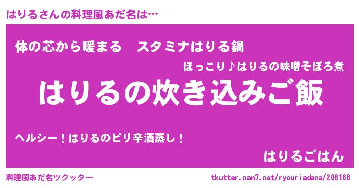 | 男性向けラノベタイトル風あだ名 | 『うちのはりるが世界を掌握している!』 |