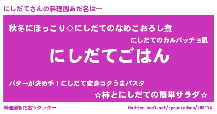 | ヘコむあだ名 | 『にしだて(小並感)』『豆乳』 |
