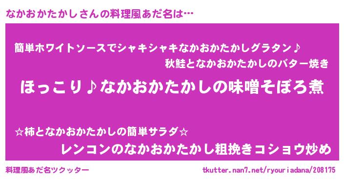 | 女子向けラノベタイトル風あだ名 | 『(仮)なかおかたかしのやんごとなき事情』 |