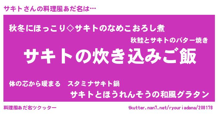 | 意味不明あだ名 | 『つくし科サキト属』『永久保存サキト』 |