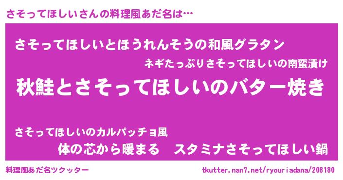 | 胡散臭い通販商品みたいなあだ名 | 『来世でも幸せになれる健康食品…その名も「さそってほしい」』 |