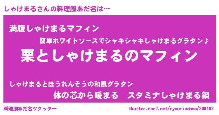 | ヘコむあだ名 | 『しゃけまる(遠い目)』『つくし』 |