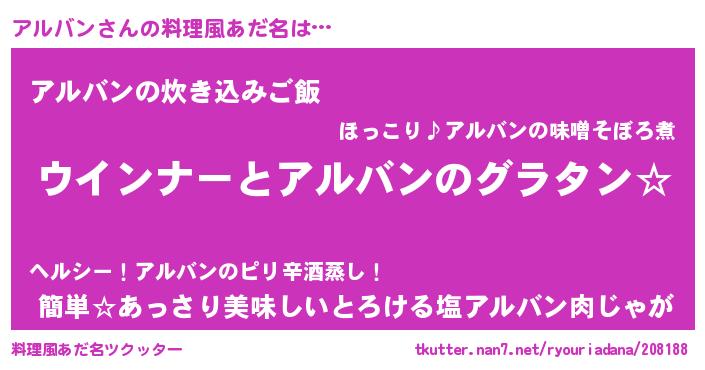 | ヘコむあだ名 | 『豆乳』『アルバン(爆)』『アルにー』 |