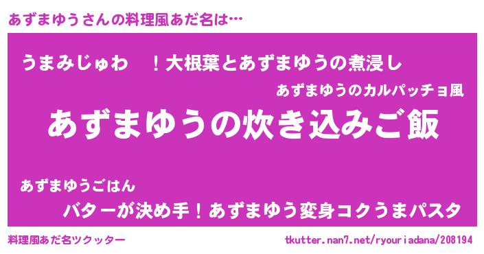 | ヘコむあだ名 | 『レバニラ』『あず太郎』『あずもー』 |