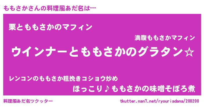 | ヘコむあだ名 | 『なまこ酢』『ももにー』『ももお』 |
