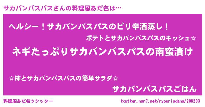 | ヒーロー風カッコイイあだ名 | 『スーパーサカバンバスパス』 |