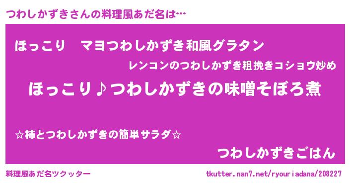 | ヘコむあだ名 | 『つわにゅー』『つわお』『つくし』 |