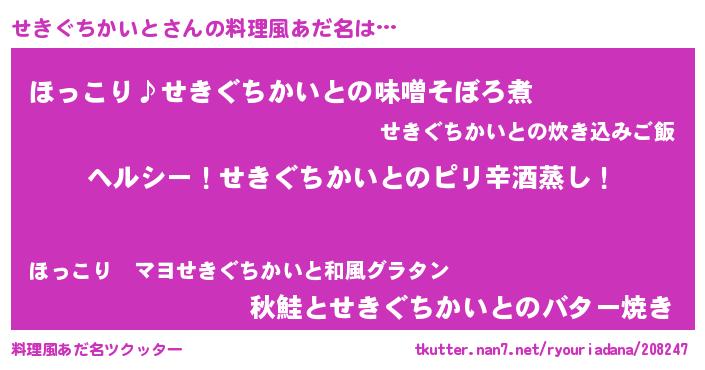 | 意味不明あだ名 | 『自称せきぐちかいと』 |