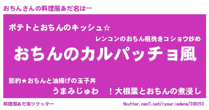 | 女子向けラノベタイトル風あだ名 | 『おちんが死なない童話 林檎のおちんの診療簿』 |