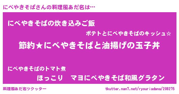 | ヒーロー風カッコイイあだ名 | 『スーパーニベヤキソバ』『仮面ニベダー』 |