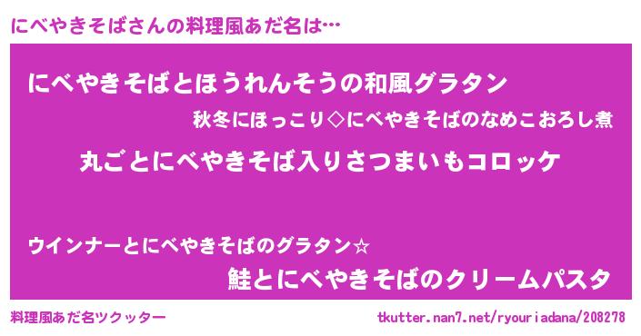 | 意味不明あだ名 | 『住所不定無職にべやきそば(3歳)』 |