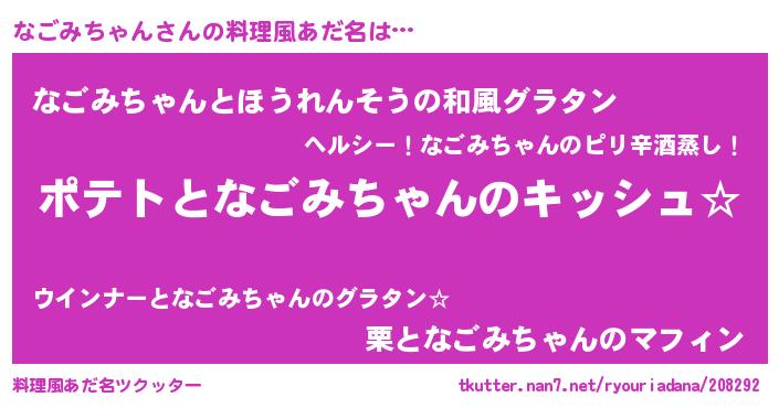 | 男性向けラノベタイトル風あだ名 | 『なごみちゃんの嫁は女の子じゃないと思った?』 |