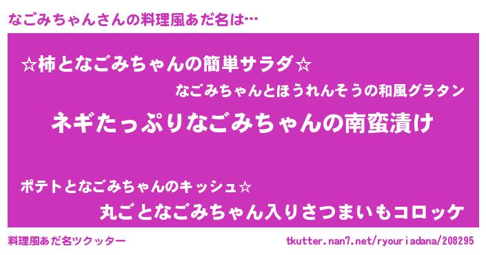 | ヒーロー風カッコイイあだ名 | 『スーパーナゴミチャン』『仮面ナゴダー』 |