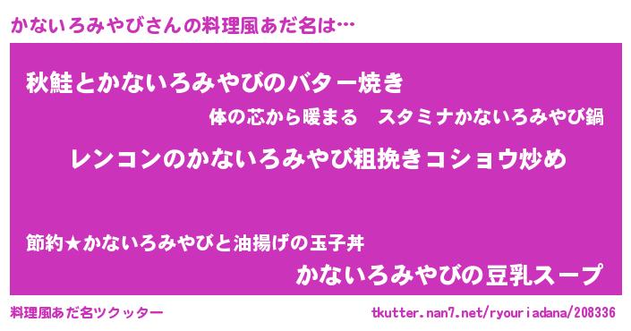 | ヘコむあだ名 | 『かないろみやび(小並感)』『かなを』 |