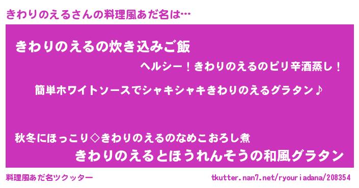 | 男性向けラノベタイトル風あだ名 | 『きわりのえるの嫁は女の子じゃないと思った?』 |