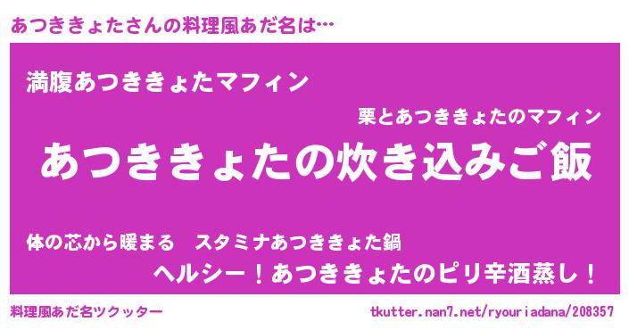 | ヘコむあだ名 | 『あつききょた(笑)』『牛乳』 |
