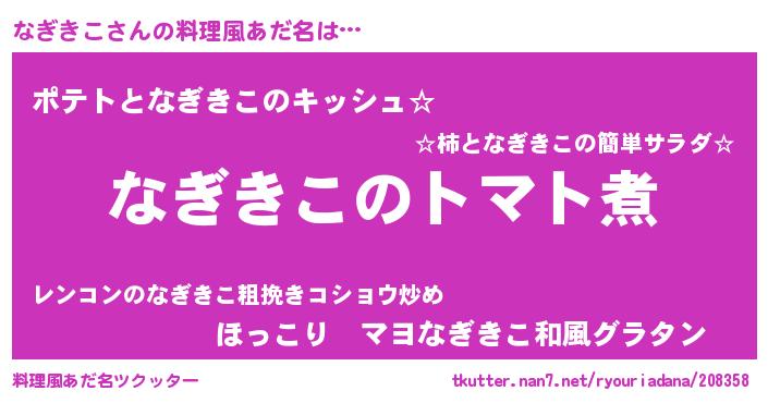 | ヘコむあだ名 | 『なぎお』『レバニラ』『なぎもー』 |