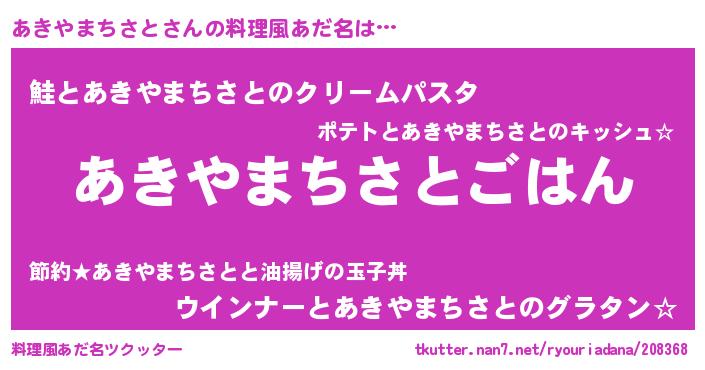 | 可愛いあだ名 | 『あきぷりん』『あきちゅっちゅ』 |