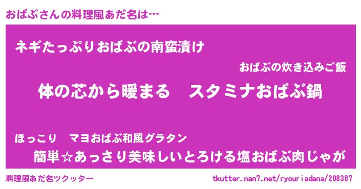 | 2回繰り返すあだ名 | 『おおばば』『おばおば』『ぐんぐん』 |