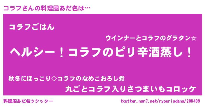 | 胡散臭い通販商品みたいなあだ名 | 『テレビで話題の高麗人参…その名も「コラフ」』 |