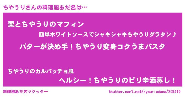 | ヒーロー風カッコイイあだ名 | 『友情の使者ちやうり』『魔戒騎士チヤ』 |