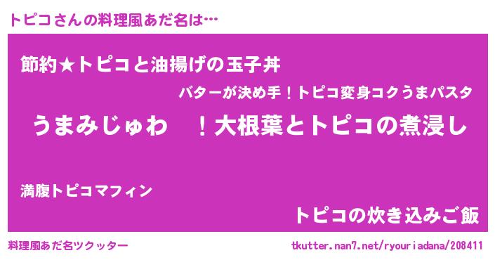 | ファンタジー風あだ名 | 『エターナルトピコー』『トピフェル』 |