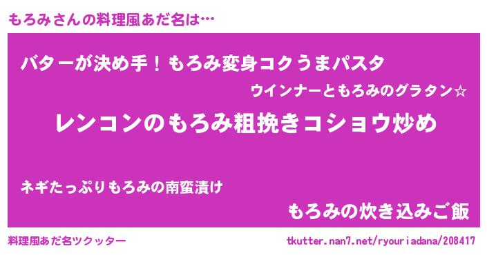 | ヘコむあだ名 | 『豆乳』『もろにゅー』『もろ太郎』 |