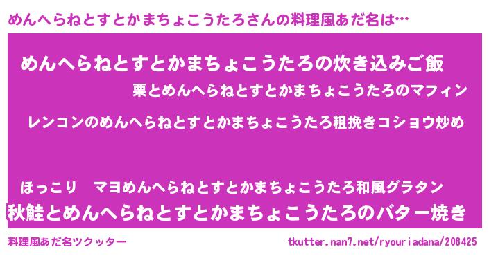 | ヘコむあだ名 | 『めんへらねとすとかまちょこうたろ(笑)』 |
