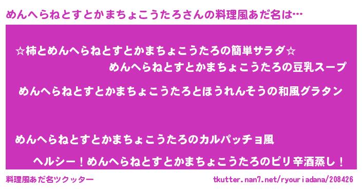 | 欧米人風あだ名 | 『トリンドルめんへらねとすとかまちょこうたろ』 |