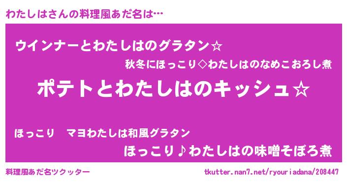 | ピコ太郎風あだ名 | 『ワタ二郎』『ピワ史郎』『ワコ六郎』 |