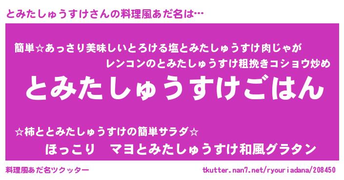 | ヘコむあだ名 | 『とみたしゅうすけ(小並感)』『とみぷりん』 |