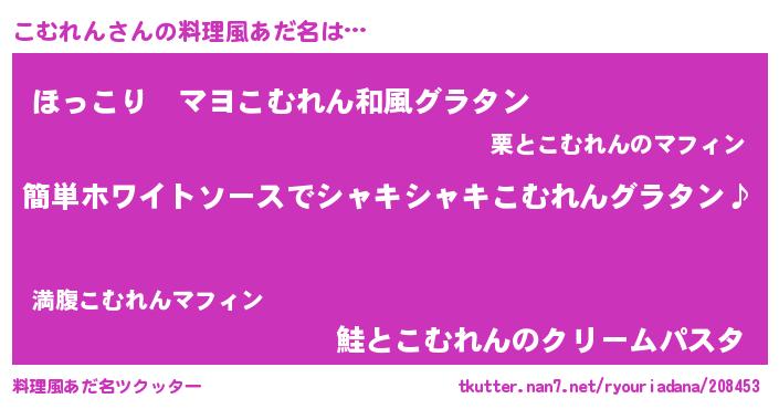 | 意味不明あだ名 | 『とにかく怪しいこむれん』 |