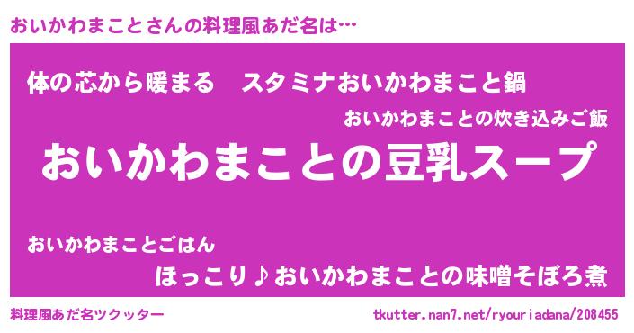 | ポケモン風あだ名 | 『ヒオイカワマコト』『オイカダネ』 |