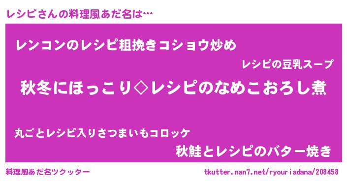 | ヘコむあだ名 | 『レシピ(笑)』『レシっぺ』『つくし』 |