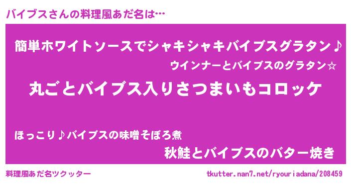 | 男性向けラノベタイトル風あだ名 | 『魔弾の王とバイブス』『バイブスの憂鬱』 |