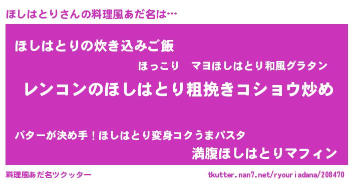 | ヘコむあだ名 | 『ほしはとり(震え声)』『ほしお』 |