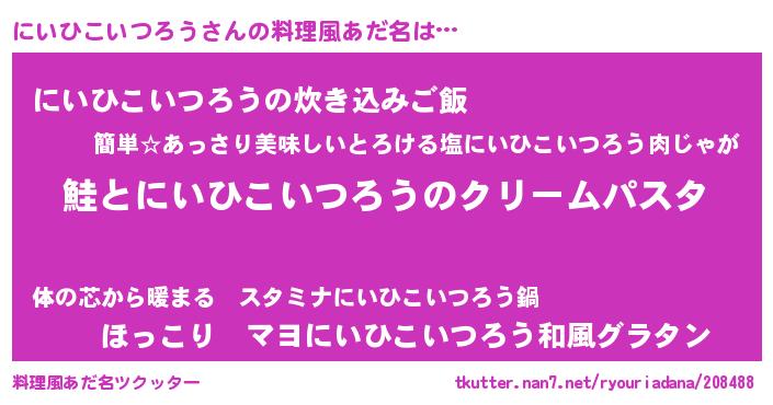 | 男性向けラノベタイトル風あだ名 | 『ノーゲーム・ノーニイヒコイツロウ』 |