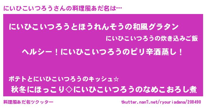 | 意味不明あだ名 | 『自称にいひこいつろう』 |
