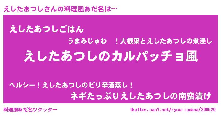 | 意味不明あだ名 | 『住所不定無職えしたあつし(53歳)』 |