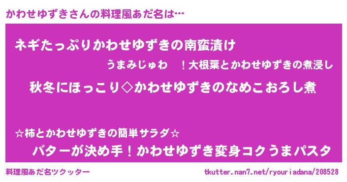 | 男性向けラノベタイトル風あだ名 | 『かわせゆずきに滅ぼされるだけの簡単なお仕事です』 |