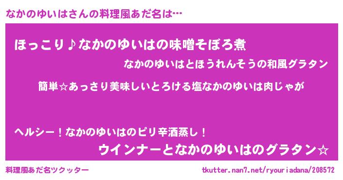 | ヘコむあだ名 | 『なかのゆいは(爆)』『なかっふぃ~』 |