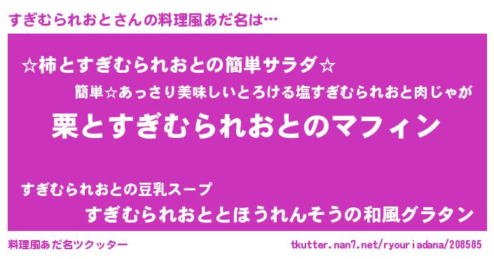 | 胡散臭い通販商品みたいなあだ名 | 『絶対に幸福をもたらす水素水…その名も「すぎむられおと」』 |