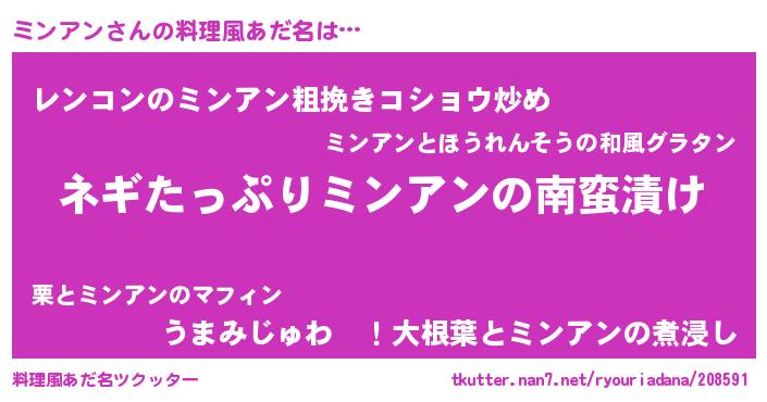 | 意味不明あだ名 | 『ペロリンミンアン』『自称ミンアン』 |