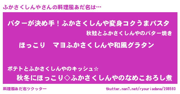 | 胡散臭い通販商品みたいなあだ名 | 『あなたにだけ特別に提供する世界で10本だけ現存している希少なブランデー…その名も「ふかさくしんや」』 |