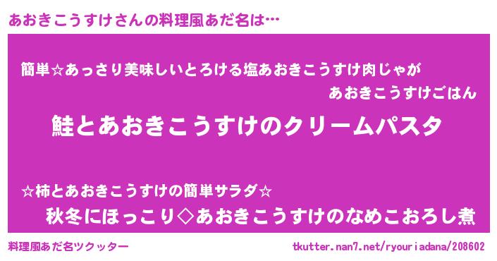 | 男性向けラノベタイトル風あだ名 | 『ノーゲーム・ノーアオキコウスケ』 |