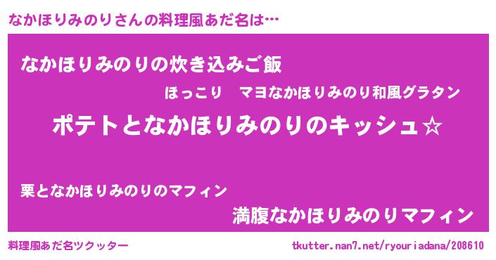 | ヘコむあだ名 | 『なかっぺ』『なかほりみのり(小並感)』 |