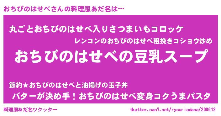 | 胡散臭い通販商品みたいなあだ名 | 『信頼と実績のサプリメント…その名も「おちびのはせべ」』 |