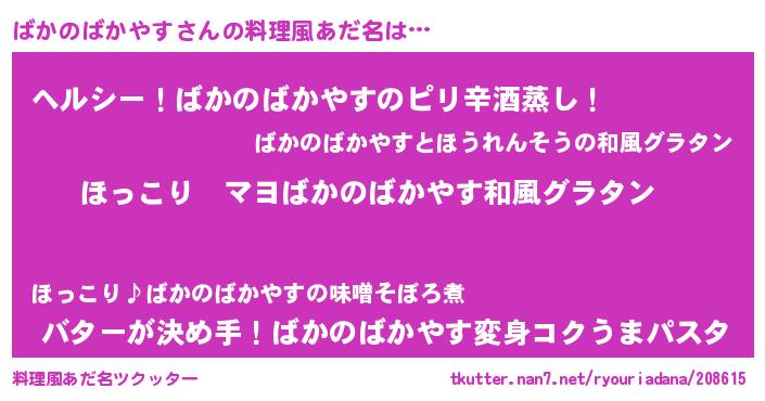 | 意味不明あだ名 | 『住所不定無職ばかのばかやす(11歳)』 |
