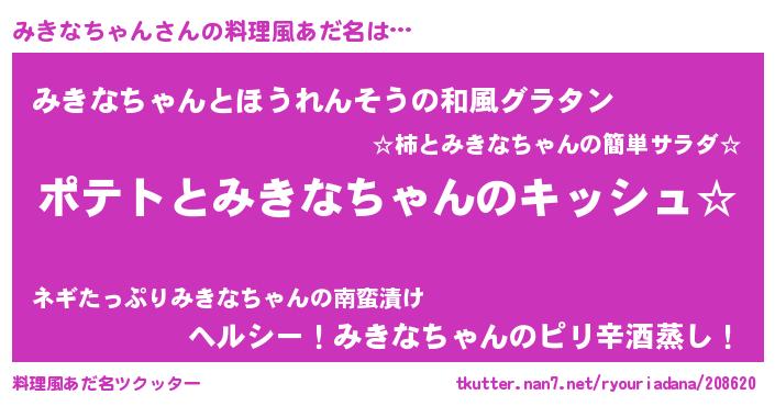 | ピコ太郎風あだ名 | 『ミキ八郎』『ミコ五郎』『ピミ一郎』 |