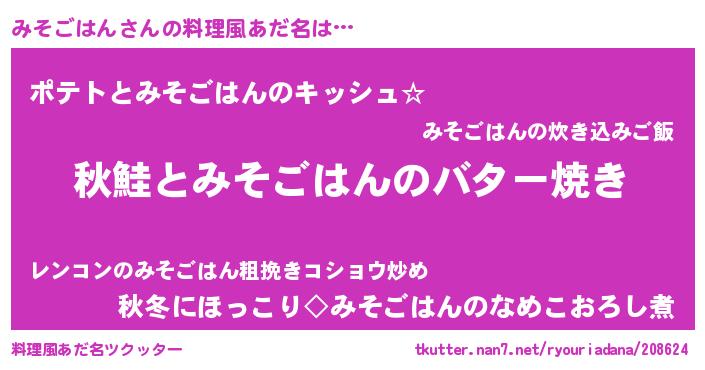 | 意味不明あだ名 | 『永久保存みそごはん』『自称みそごはん』 |